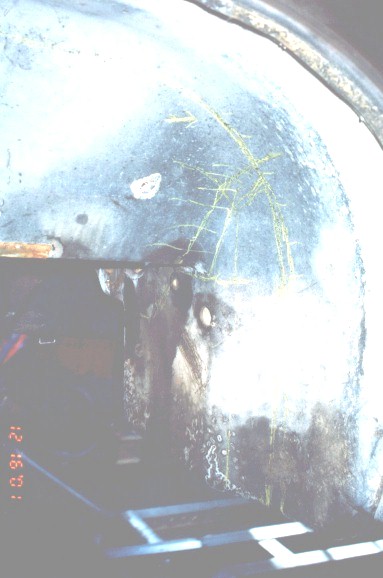 It was a given that a lot of the composite underbody would have to be cut away to make room for the new frame. At several points in time, I lowered the body onto the frame to identify the interferences, which I marked up with yellow crayon.
