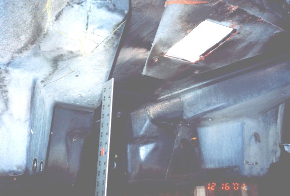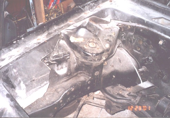 Initial inspection, just to get a feel for where to cut. When I saw the asbestos shield that the manufacturers of the Delorean put between the underbody and the Renault transmission, I made sure to read between those lines.