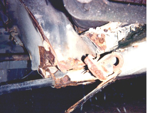Here are some pictures of the car prior to dismantling. Some parts of the car had held up well; others were in sad shape. All in all, the cost of repairs to bring the car back to nearly original condition would have exceeded its value, rendering the car totalled by definition, though restorable. That was part of what prompted me to radically alter the car. I couldn't justify just restoring it, but I could justify doing something a little creative.