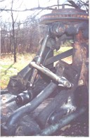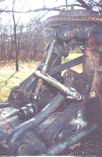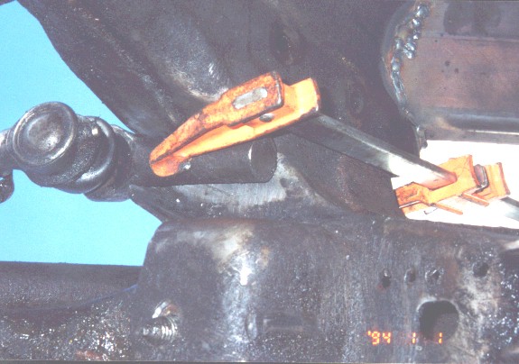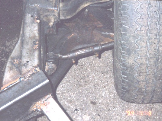The part of the draglink that connects to the tierod was cut off, and welded to the frame to lock the steering. I don't know what they make those draglinks out of, but they're really hard to cut.