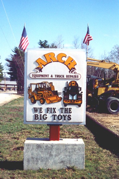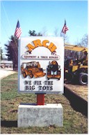 A friend of mine, Bill, volunteered to sandblast the suspension components, which were solid on the whole, but in need of surface rust removal. Here's his company's sign at ARCH Equipment and Truck Repairs. They have an enormous spray booth with an advanced convection system of their own design, which I'm told is so good that it is frequently copied by others. I've never seen anything like it. When a truck leaves this place, it looks new.
